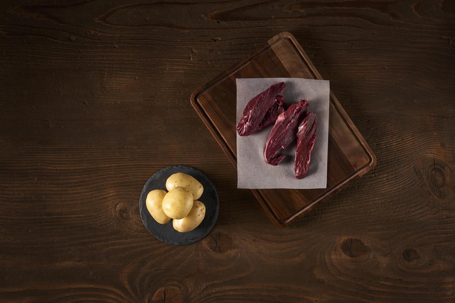Für dieses Produkt verwenden wir frisches Pferdemuskelfleisch und gesunde Bio Kartoffeln.